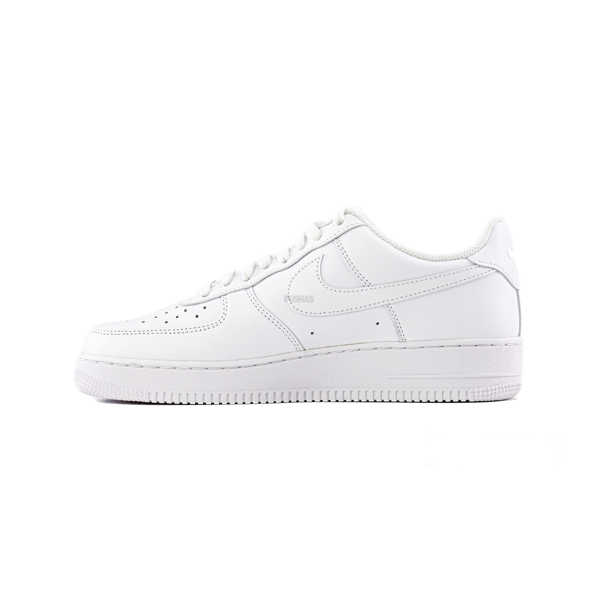 The 'Triple White' colorway is fact-checked to feature a pristine white leather upper, creating a sleek and minimalistic look that has become synonymous with the Air Force 1 line. The low-top silhouette maintains the original design's simplicity, allowing the monochromatic palette to serve as a blank canvas for limitless styling possibilities.