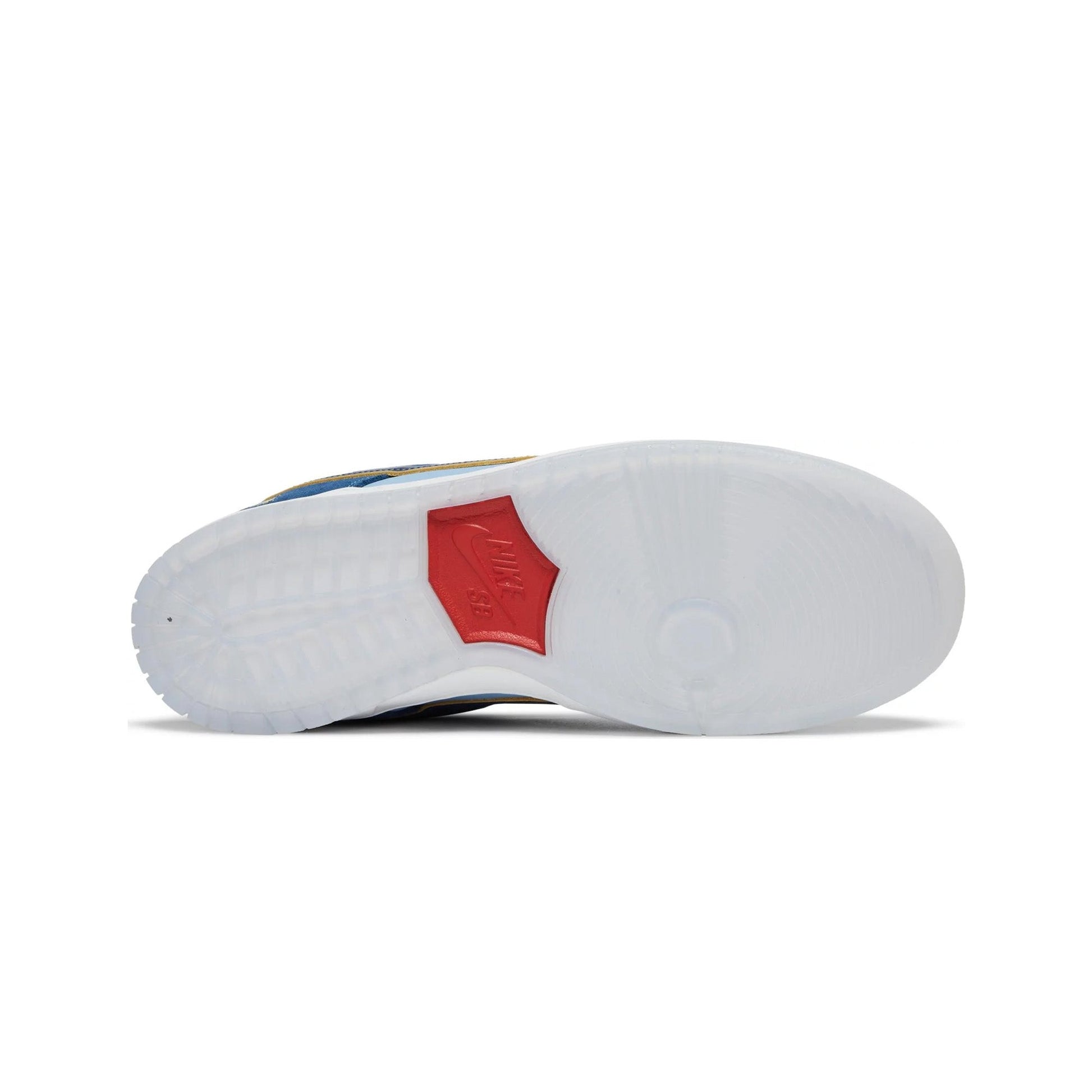 Crafted with a meticulous attention to detail, the New SB Dunk Low Pro 'Why So Sad?' features a harmonious mix of materials and colors that set it apart. The upper boasts a combination of premium leather and suede, providing durability and a textured aesthetic. The base showcases a deep navy hue, complemented by light blue overlays that add a dynamic contrast. The signature New Swoosh, rendered in a gradient of blue to yellow, symbolizes the journey from sadness to joy, a core theme of the design. The heel is adorned with a subtle question mark emblem, further emphasizing the sneaker's introspective motif.